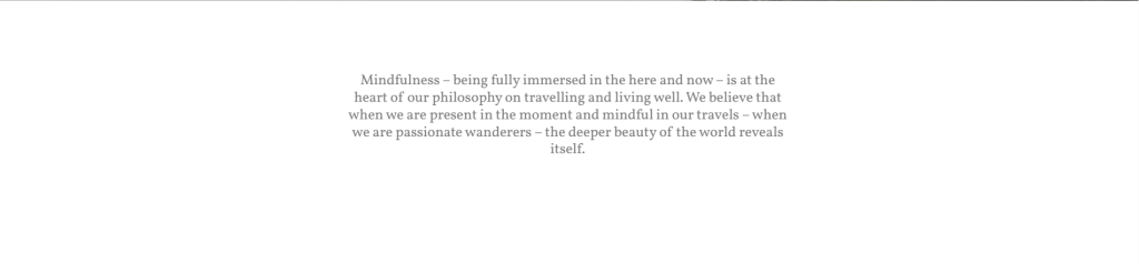 Mindfulness – being fully immersed in the here and now – is at the heart of our philosophy on travelling and living well. We believe that when we are present in the moment and mindful in our travels – when we are passionate wanderers – the deeper beauty of the world reveals itself.
