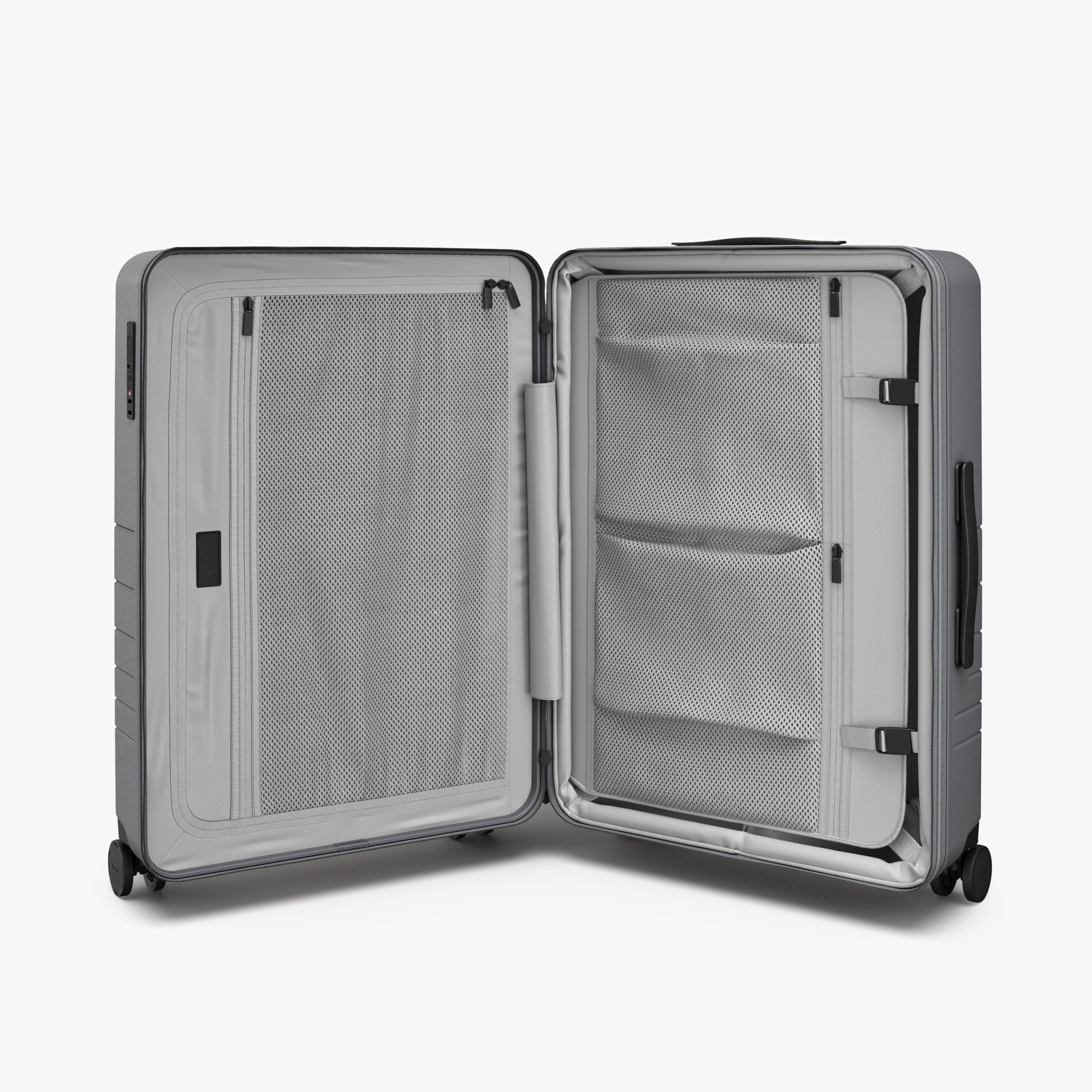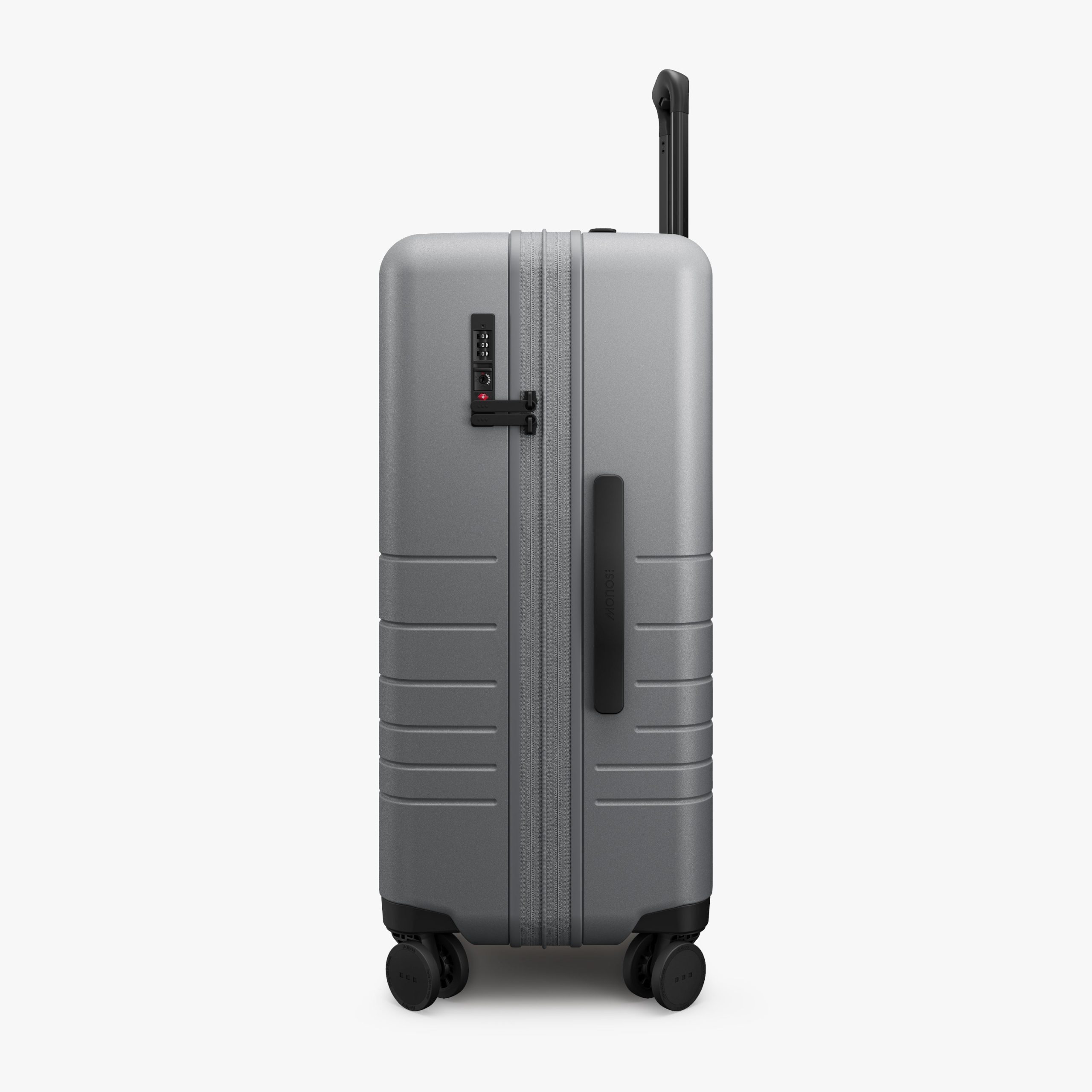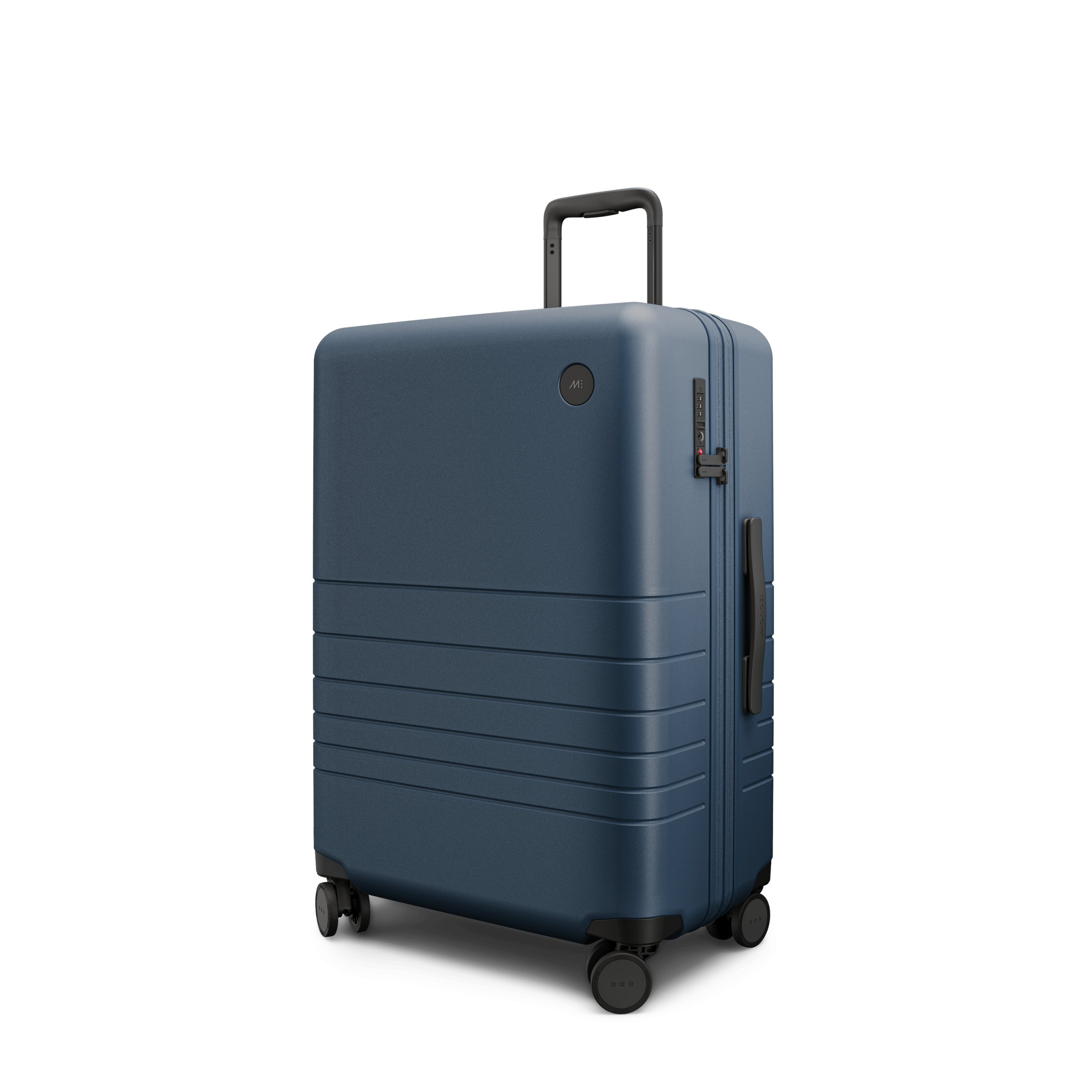 Outfitted with a high-quality polycarbonate shell. the Expandable Check-In Medium is dent-resistant. impact-friendly and virtually unbreakable. It features our new ultra-sturdy telescopic handle. redesigned 57 mm whisper-quiet wheels. TSA-Accepted lock. vegan leather details. and all-premium materials. Any of our carry-on sizes can nest inside for easy storage when you’re not travelling.
