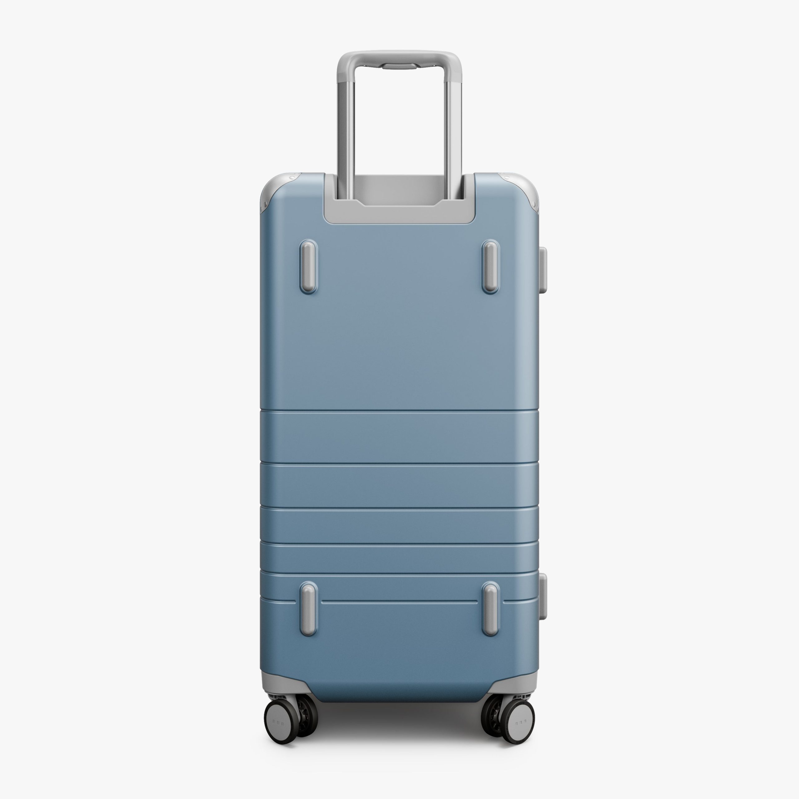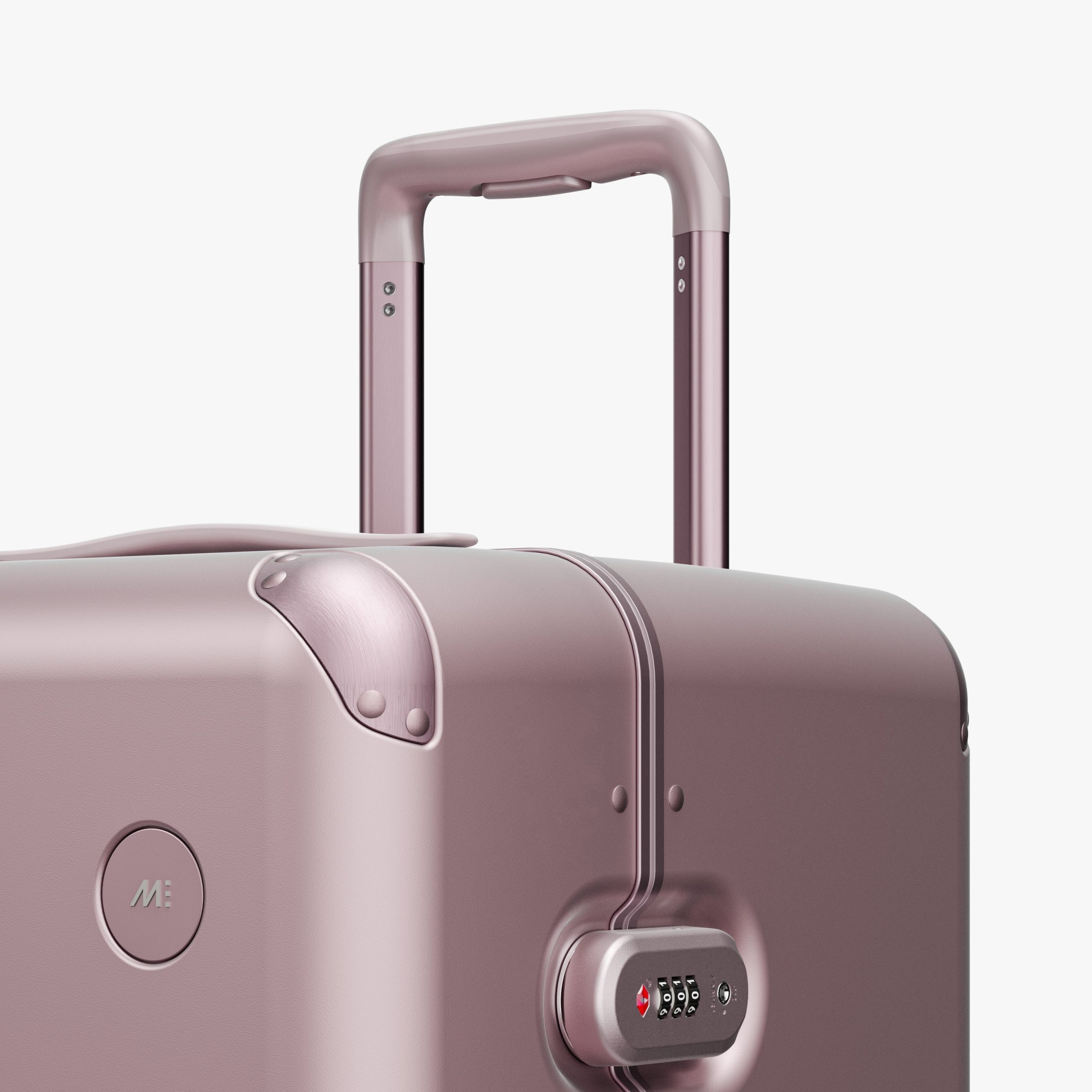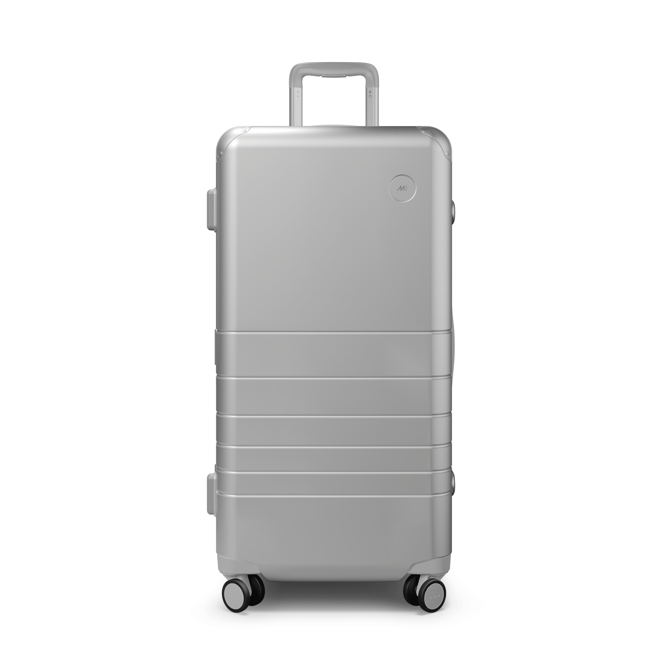 Outfitted with a zipperless aluminum frame. anodized corner guards. unbreakable polycarbonate shell with a refined metallic finish. and all colour-matched components from the ultra-sturdy telescopic handle to the two TSA-Accepted locks and whisper-quiet wheels.