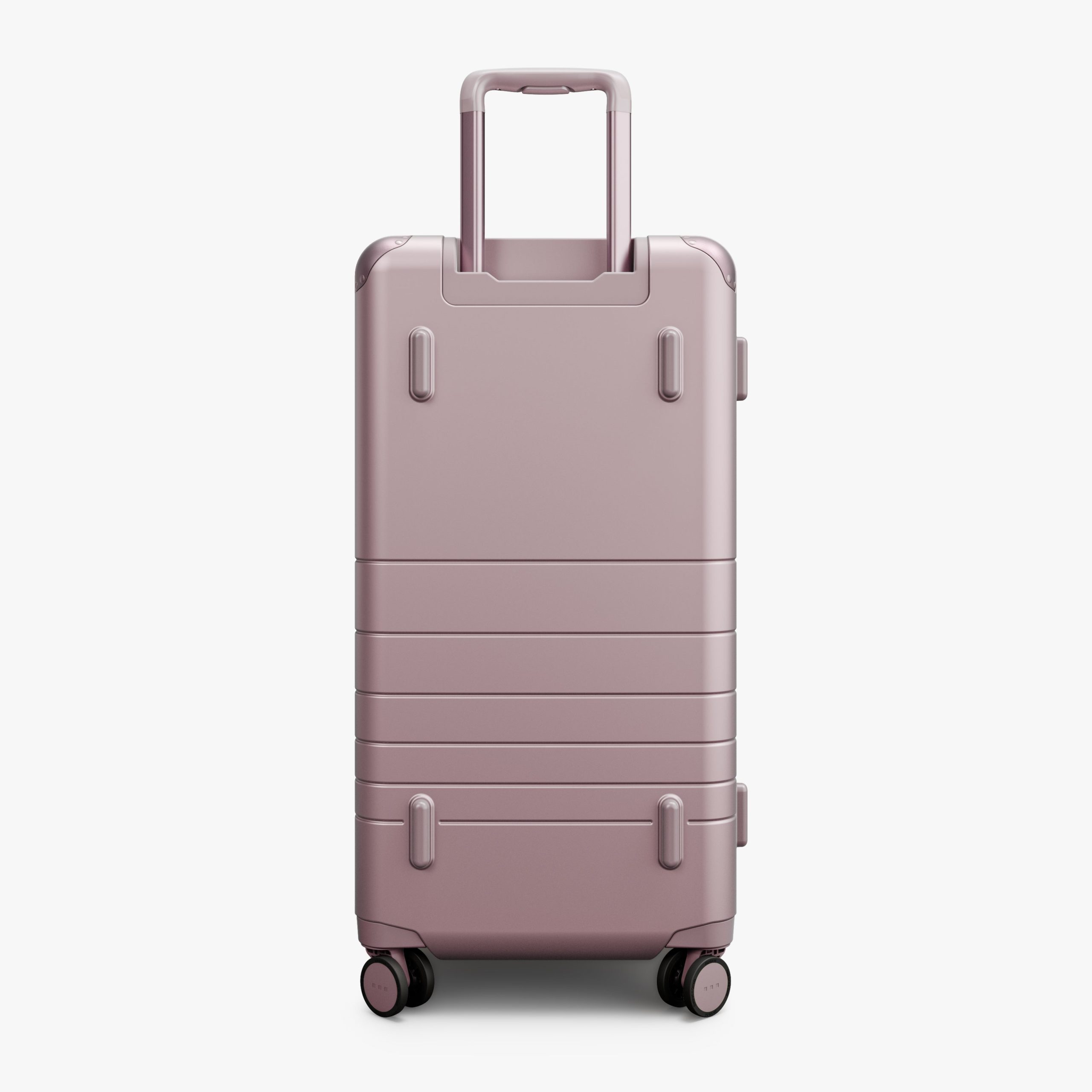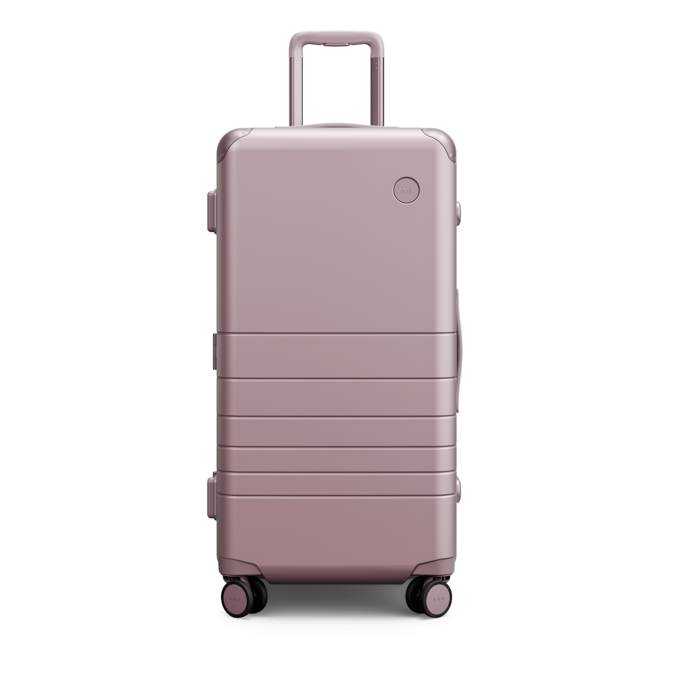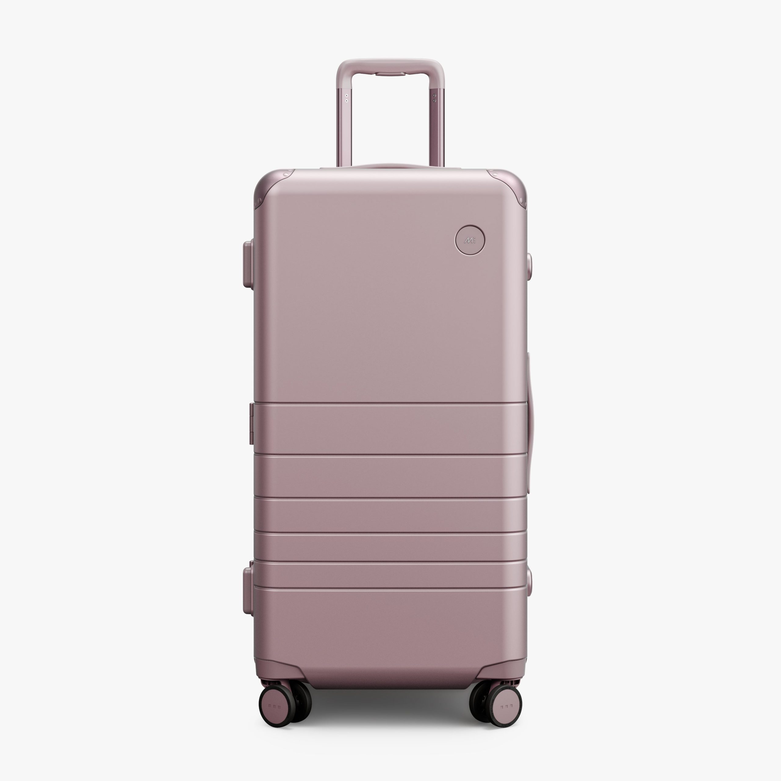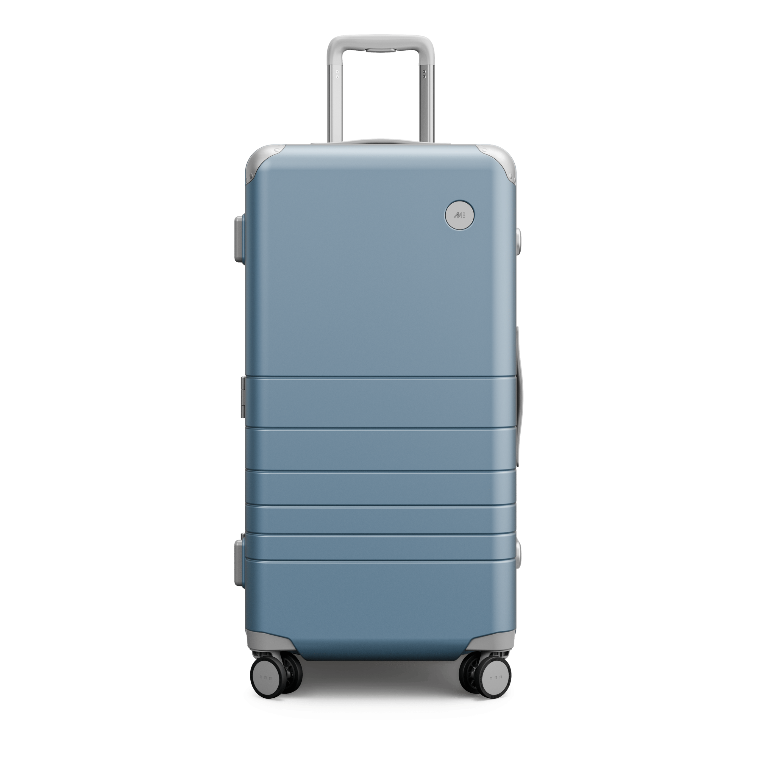 Outfitted with a zipperless aluminum frame. anodized corner guards. unbreakable polycarbonate shell with a refined metallic finish. and all colour-matched components from the ultra-sturdy telescopic handle to the two TSA-Accepted locks and whisper-quiet wheels.