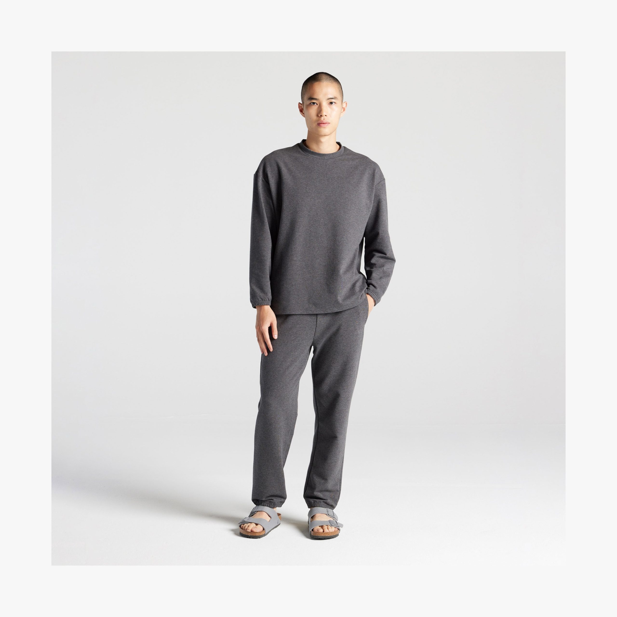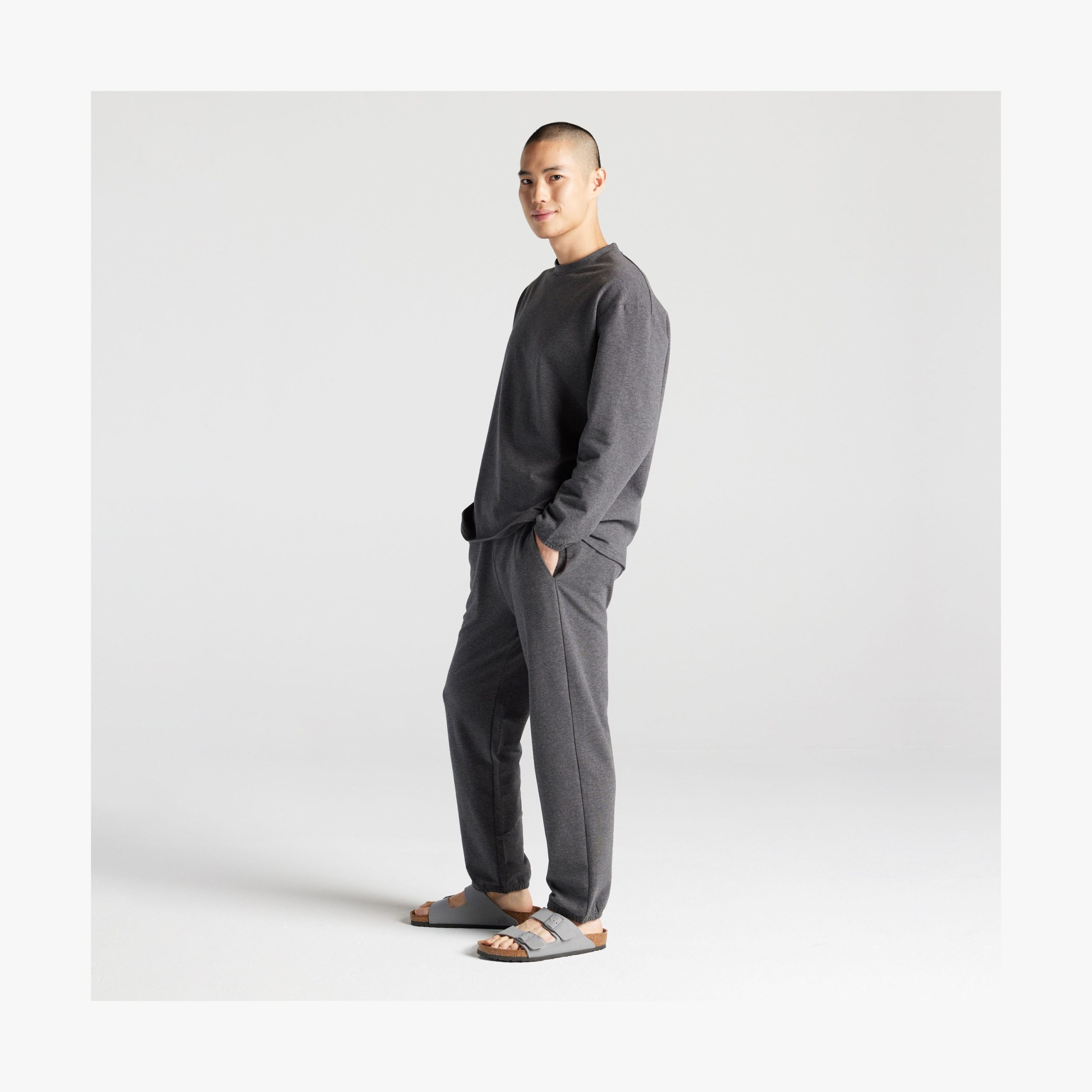 Bring the comfort of loungewear into everyday life. The gender neutral Kyoto Pants feature a clean. straight-cut silhouette with a slight taper at the hem. with minimal. barely-there elastic cuffs – a balanced blend between dressy slacks and sporty jogger sweatpants. Crafted with supremely soft. breathable cotton. these mid-weight pants are designed to keep you cool. cozy. and comfy – in all seasons and scenarios. Pair with our Kyoto Long Sleeve for head-to-toe comfort wherever you go.