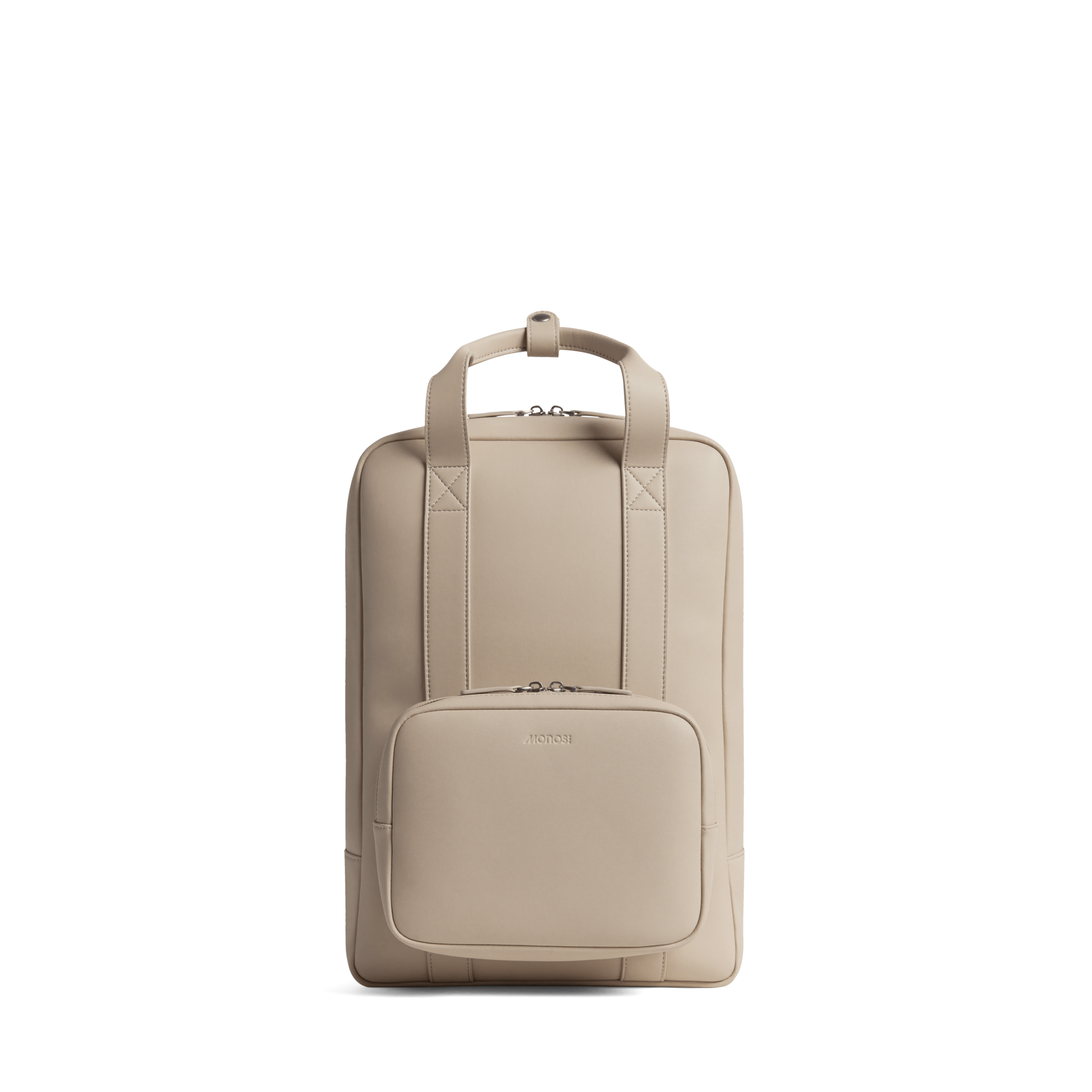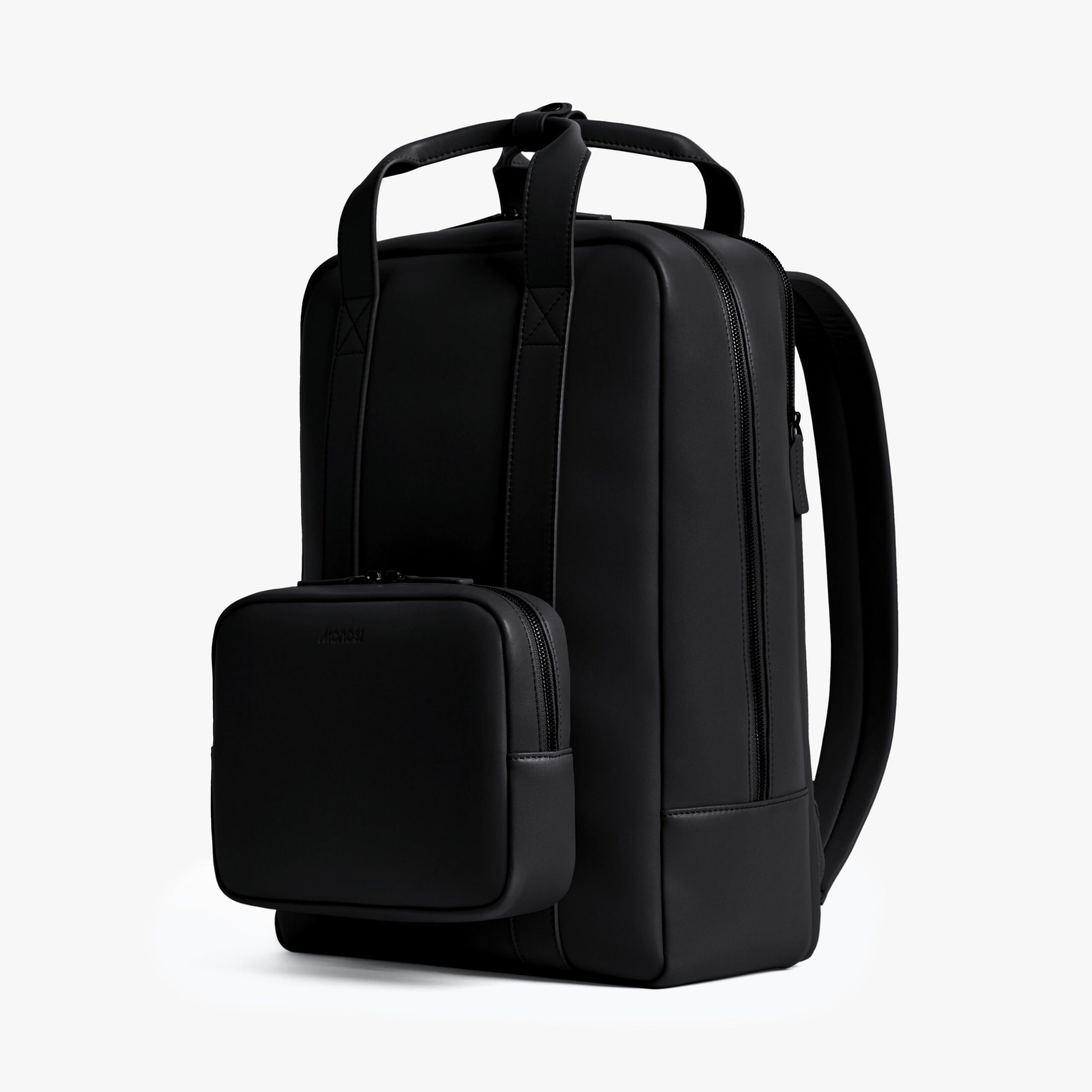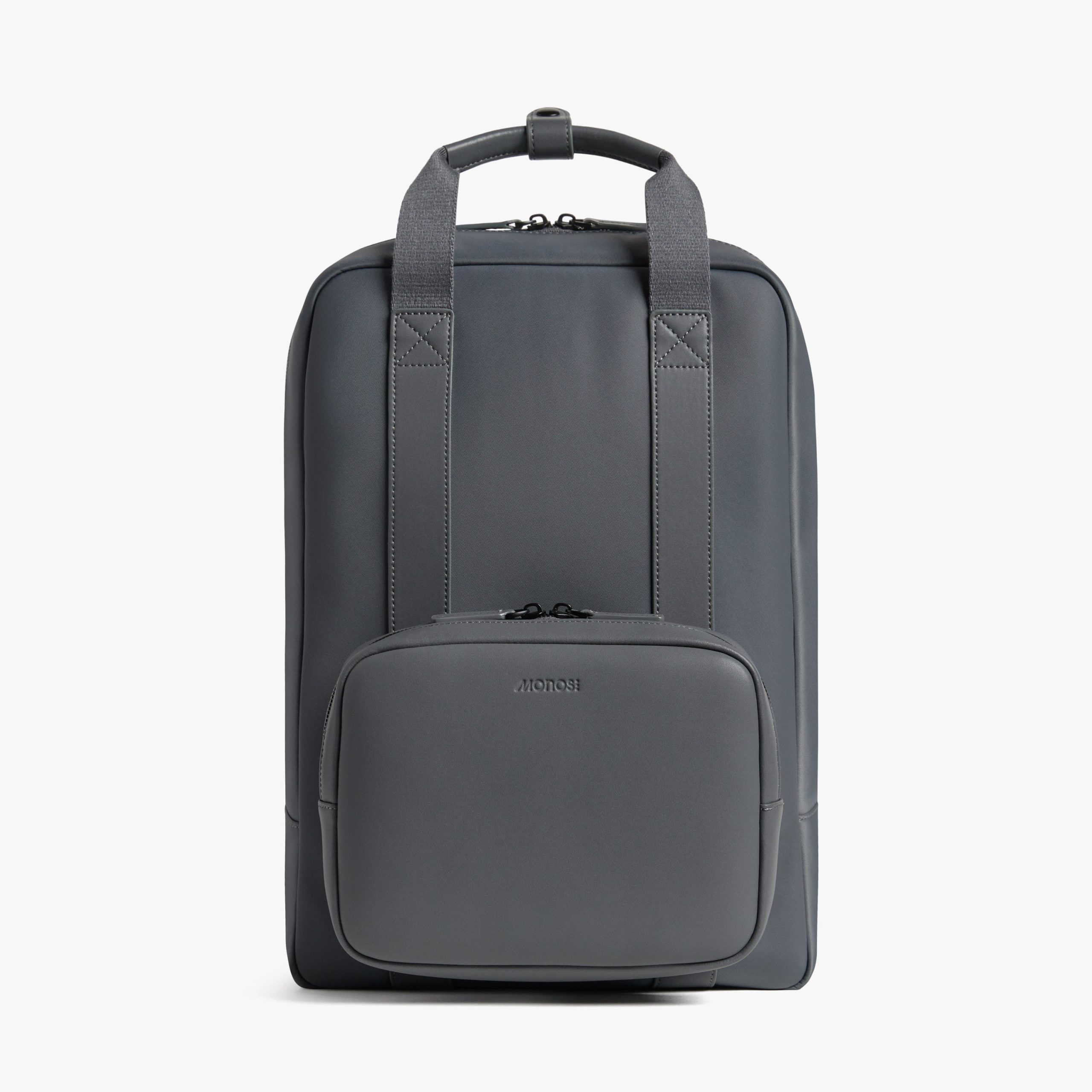 - Both the nylon and vegan leather finishes are water and scratch-resistant