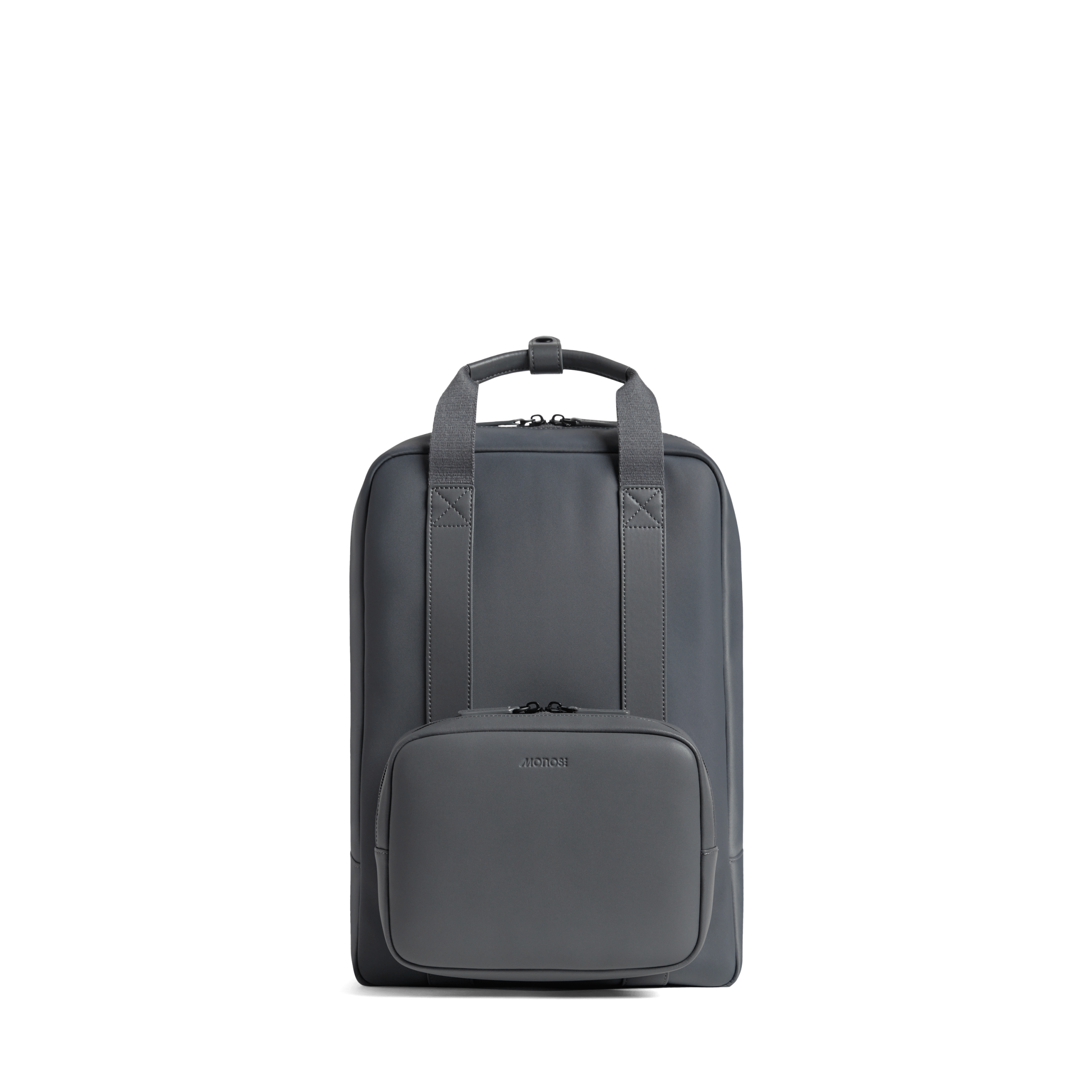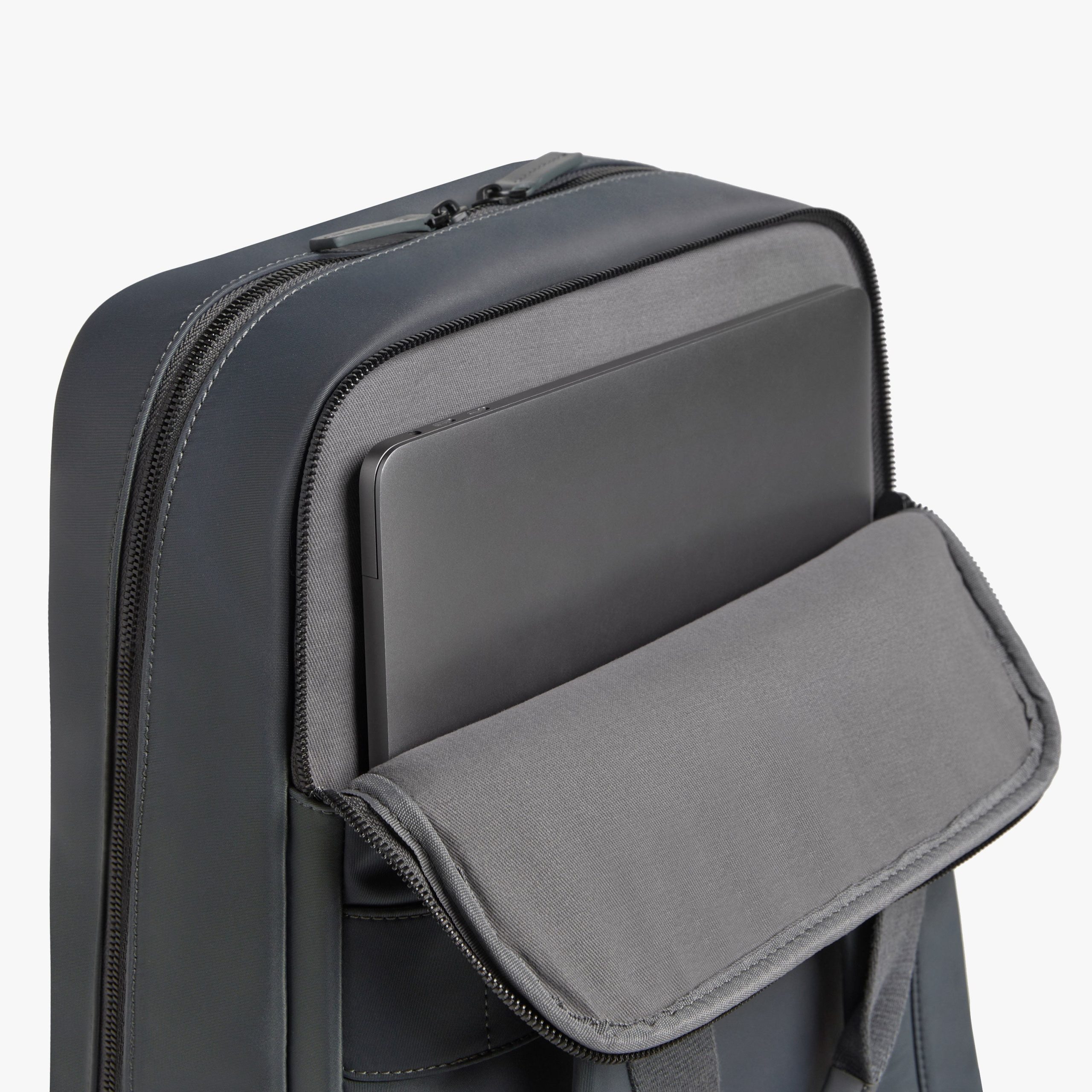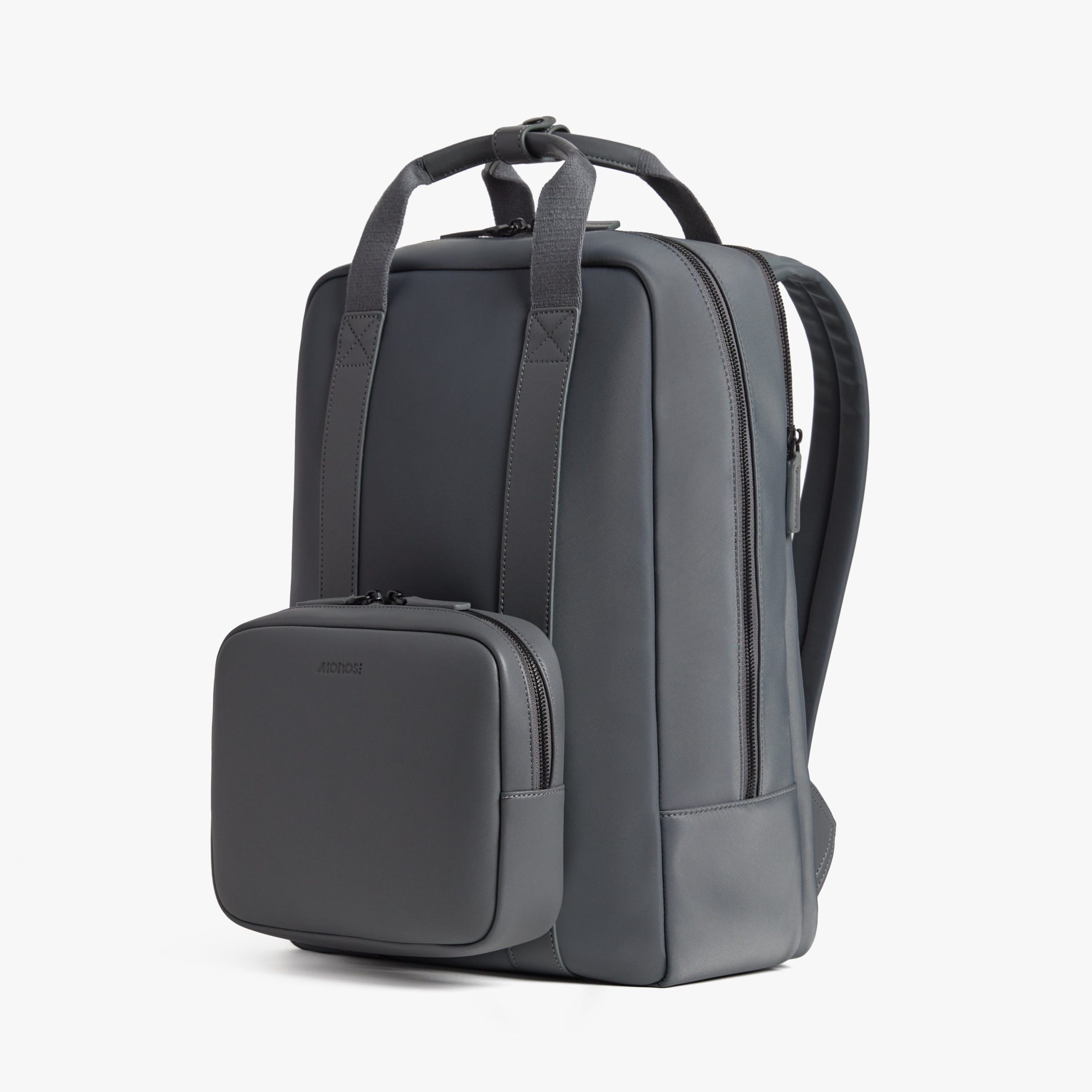 - Both the nylon and vegan leather finishes are water and scratch-resistant
