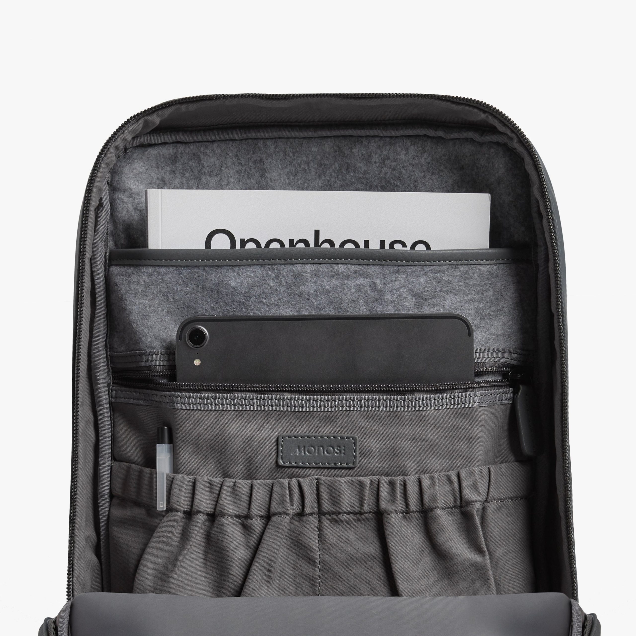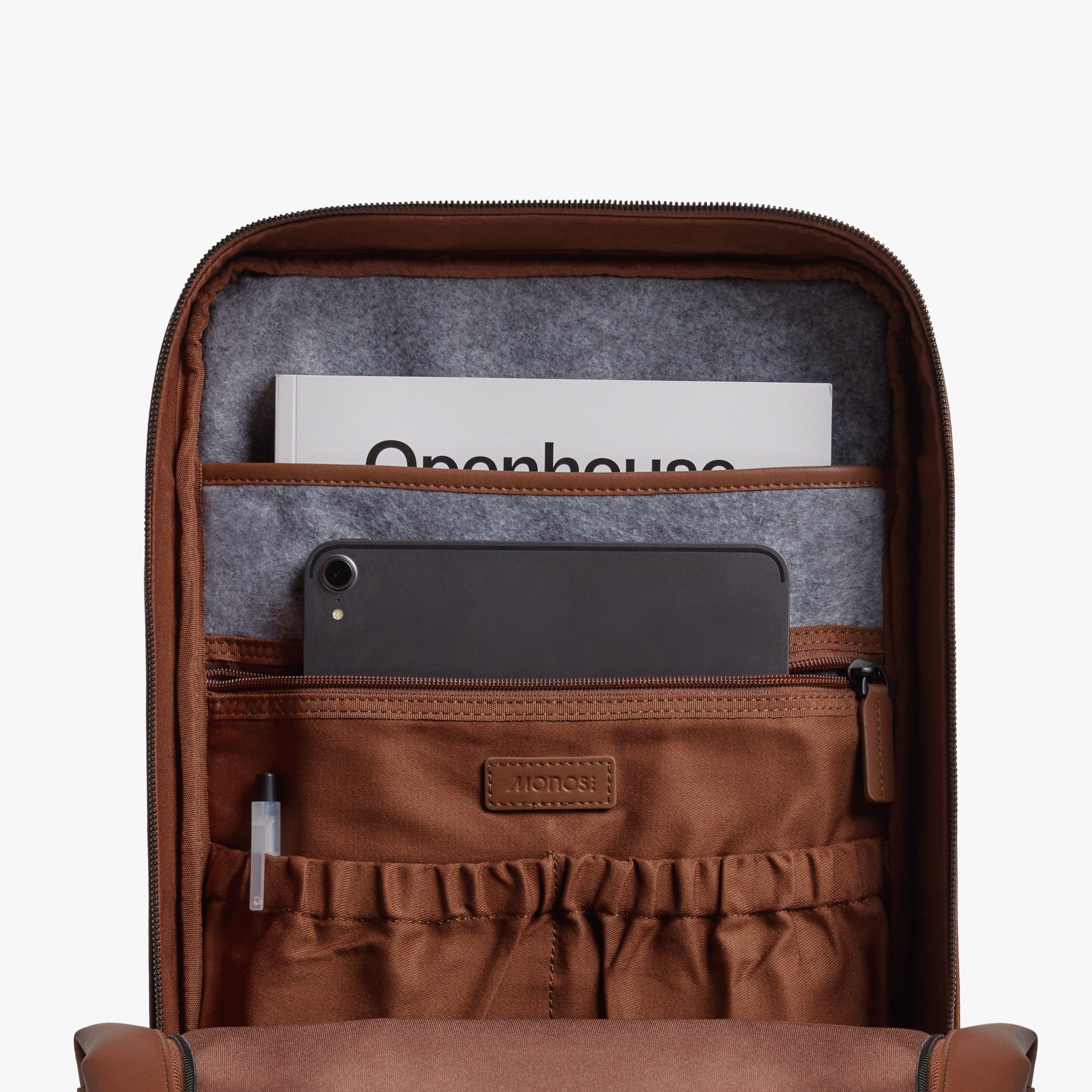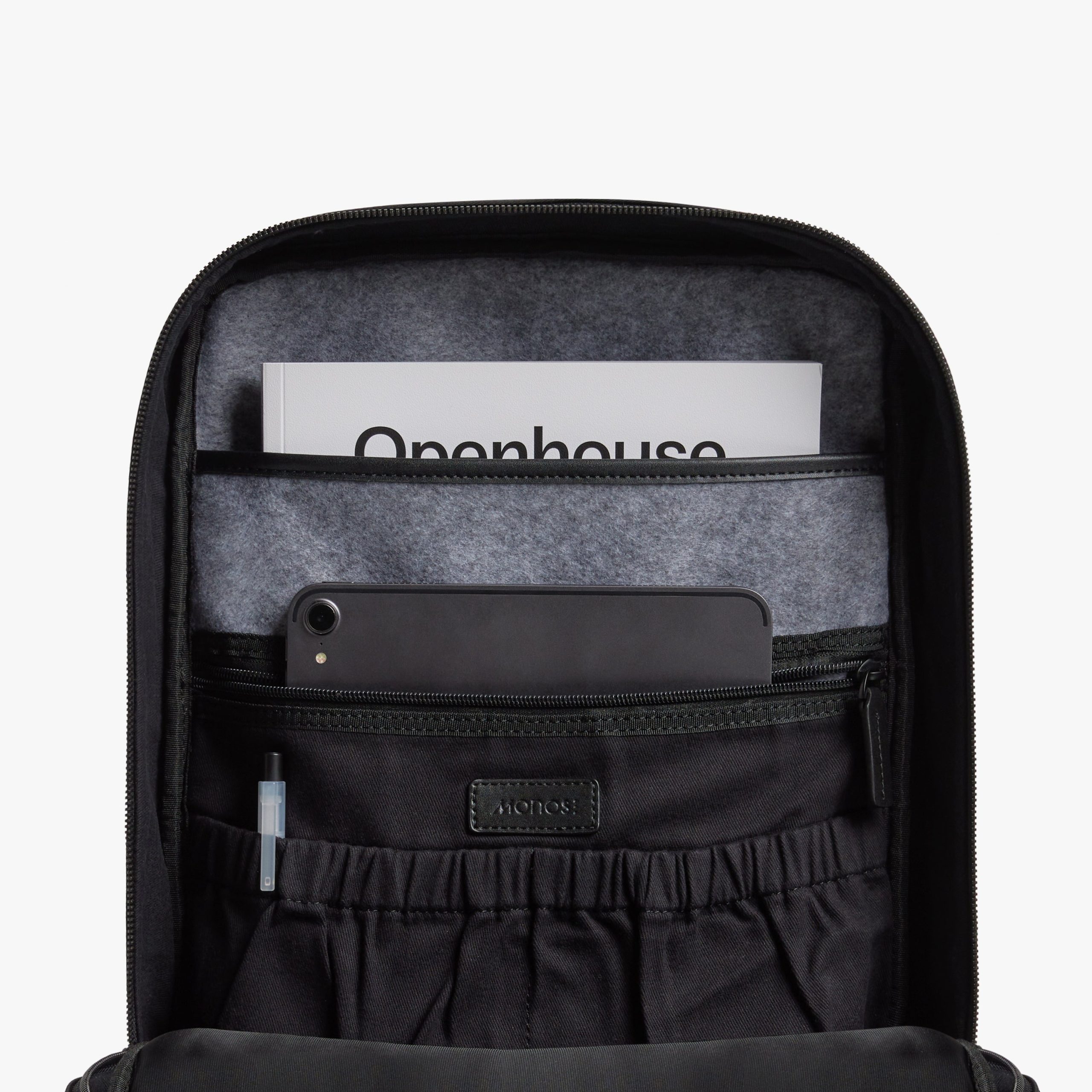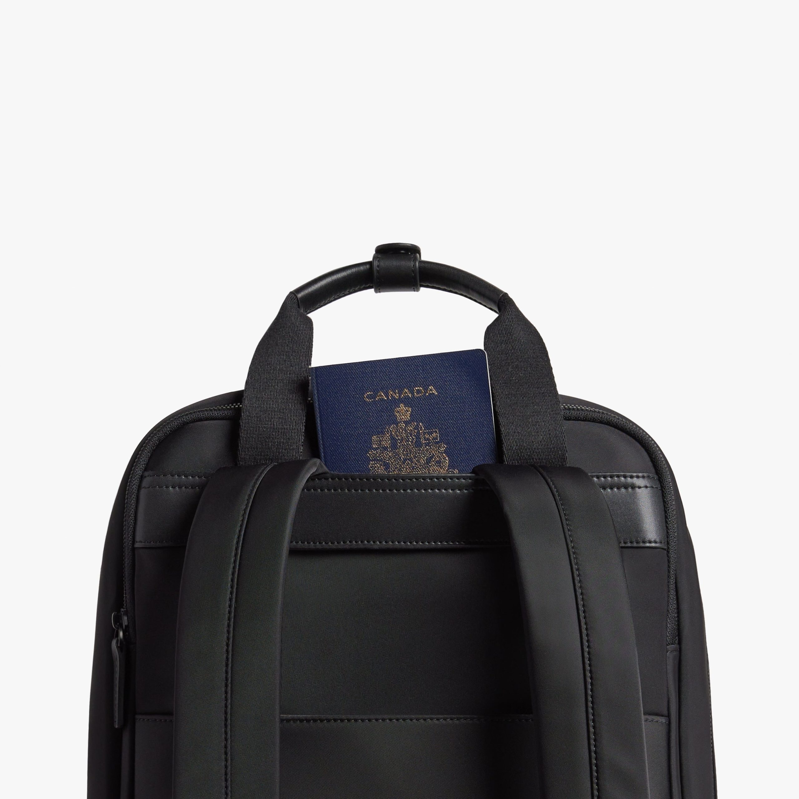 - Equipped with a top carry handle. adjustable shoulder straps. and a trolley sleeve to secure your backpack to a suitcase handle while travelling