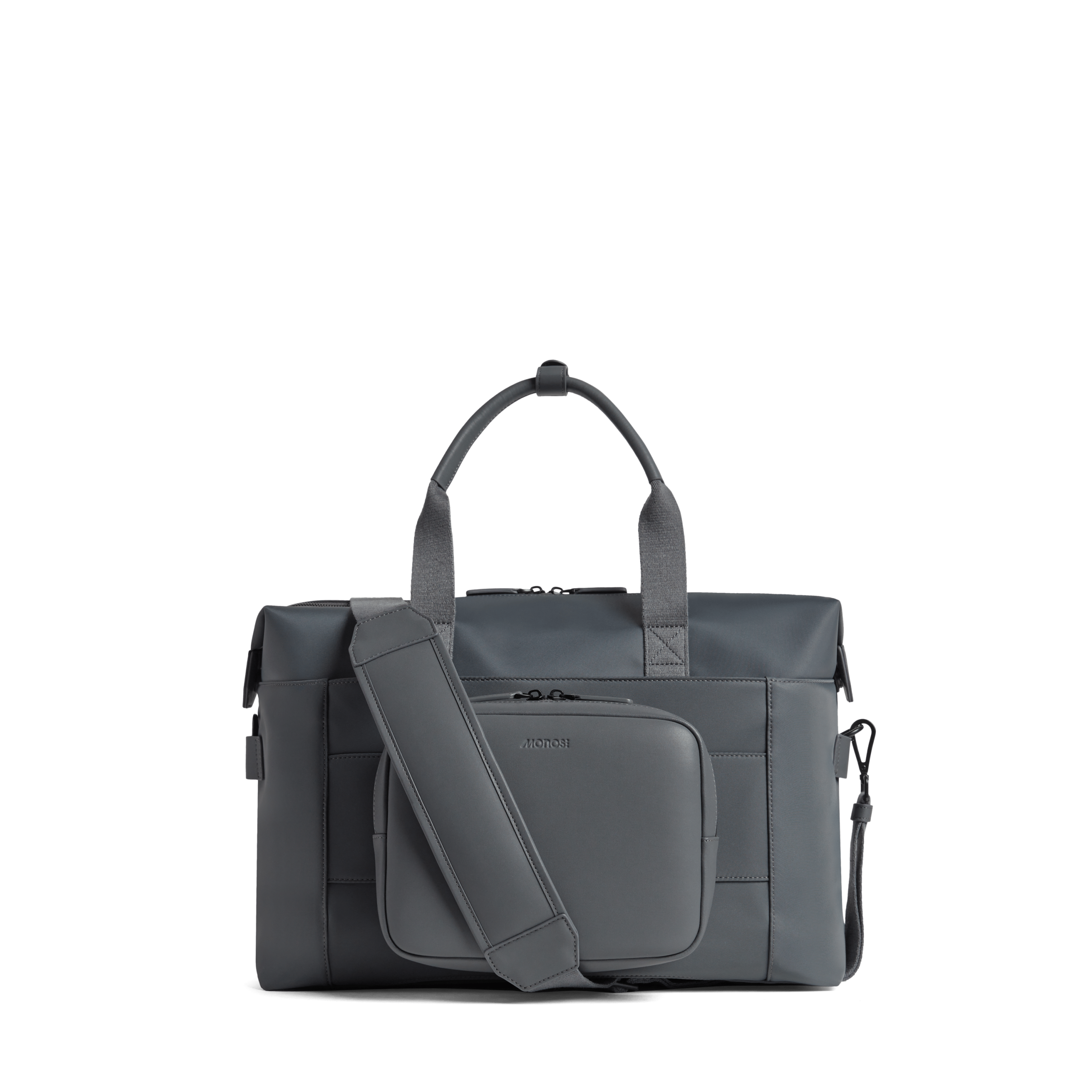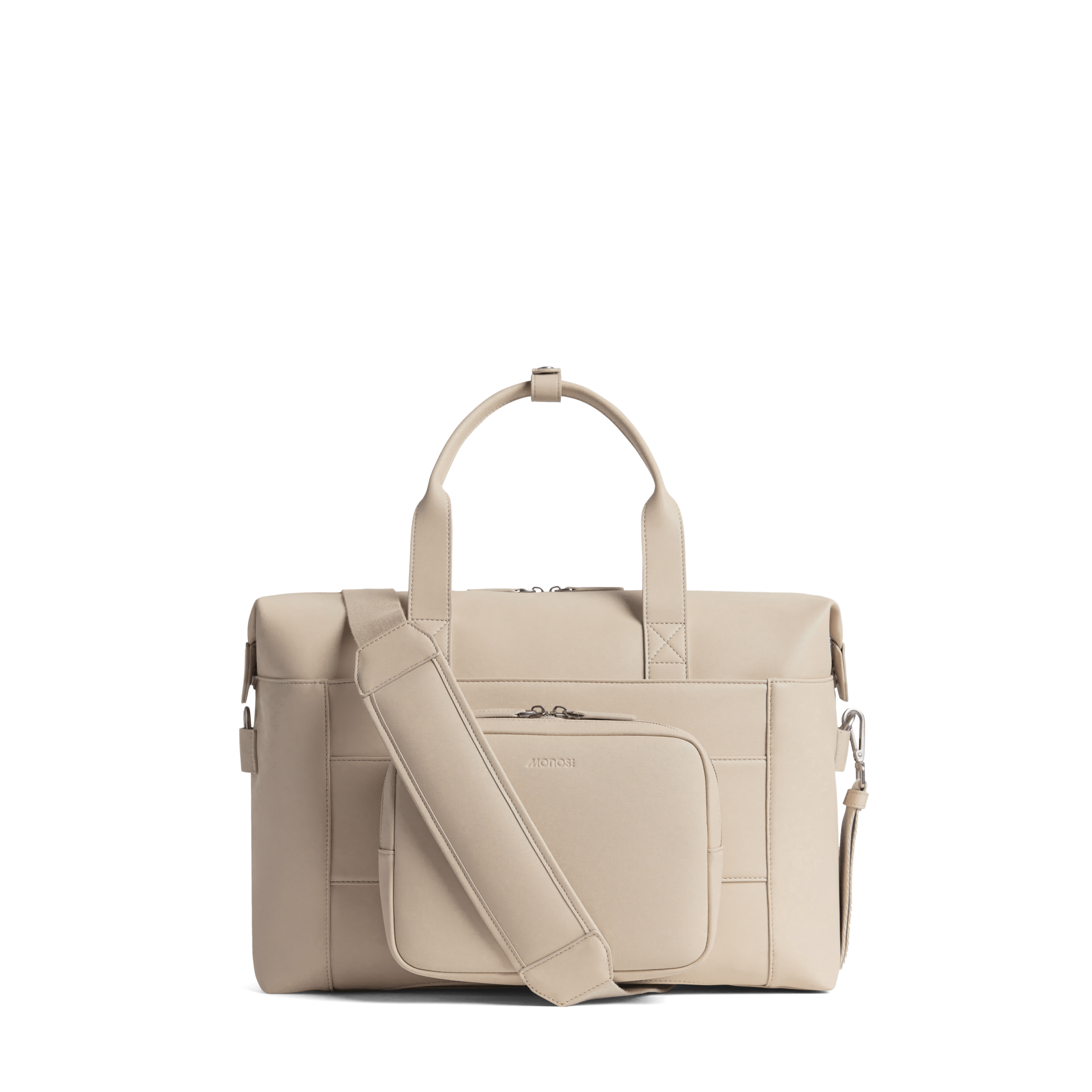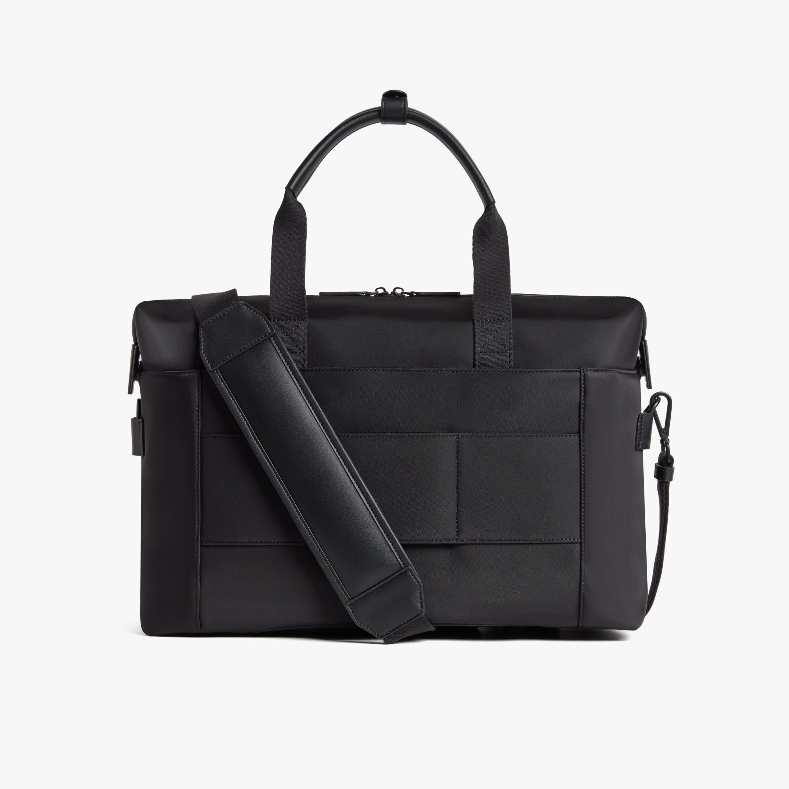 - Both the nylon and vegan leather finishes are water and scratch-resistant