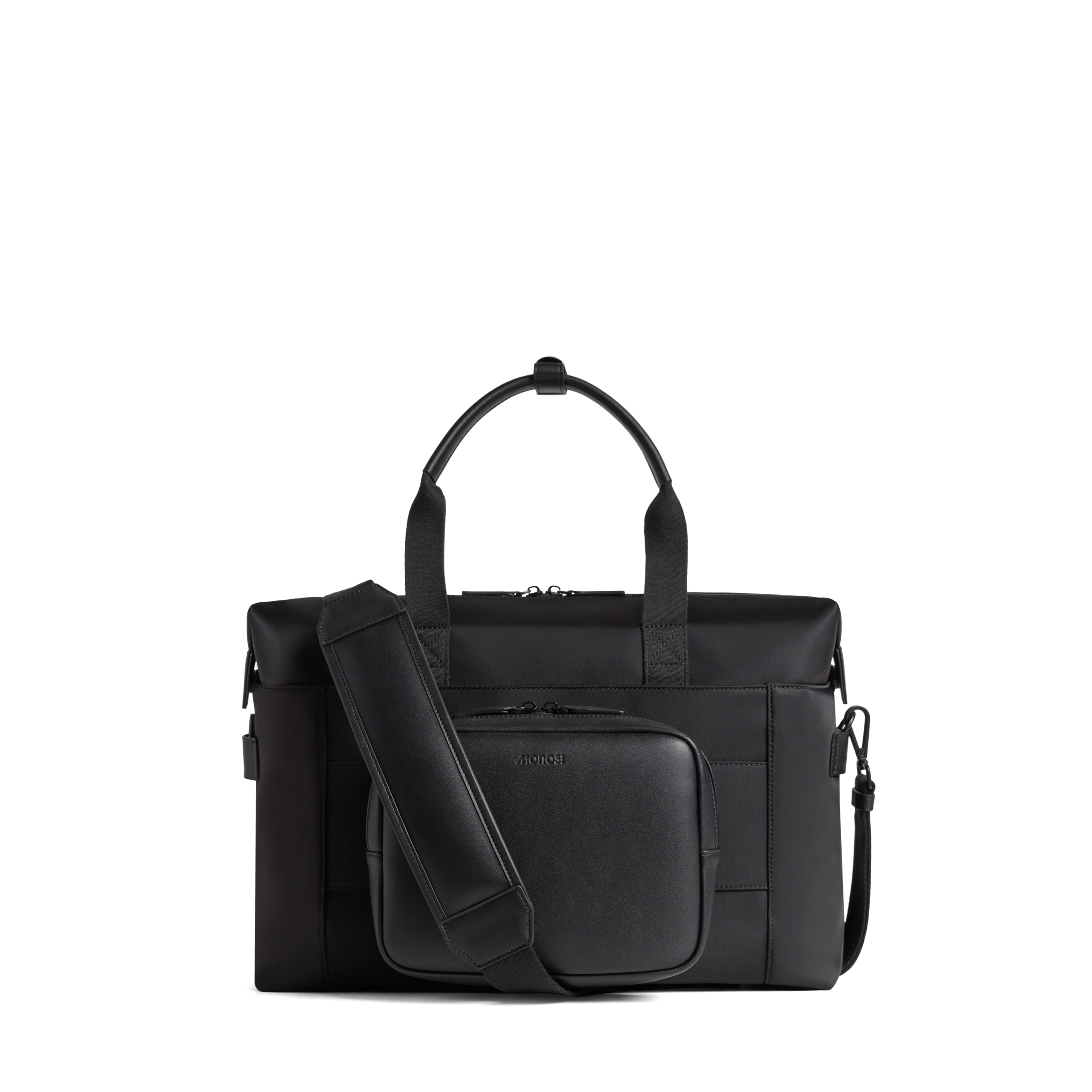 - The nylon finish is made with premium nylon twill and features ultra-microfibre vegan leather accents