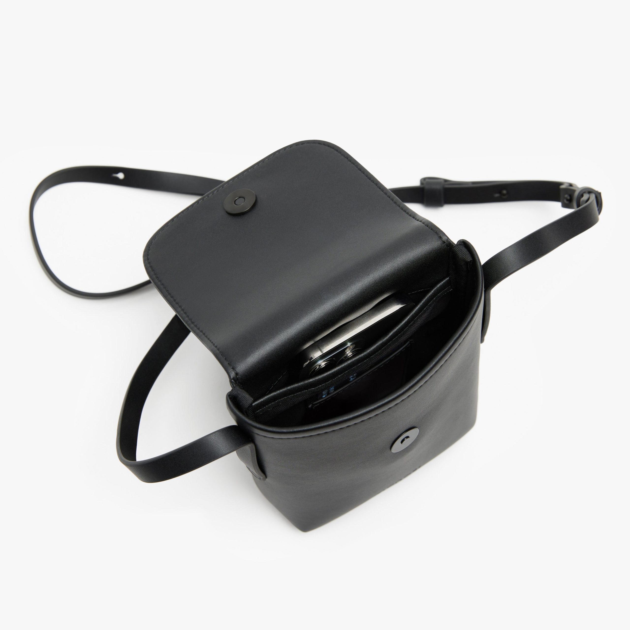 Designed to securely carry your daily essentials hands-free. the main compartment closes with a magnetic flap – perfect for easy storage of your phone and wallet. For effortless organization. the interior of the Metro Mini Crossbody features a built-in passport pocket and two card slots. Store any extra items in the easy-to-access exterior pocket. An adjustable shoulder strap lets you change the length based on your comfort and preference.