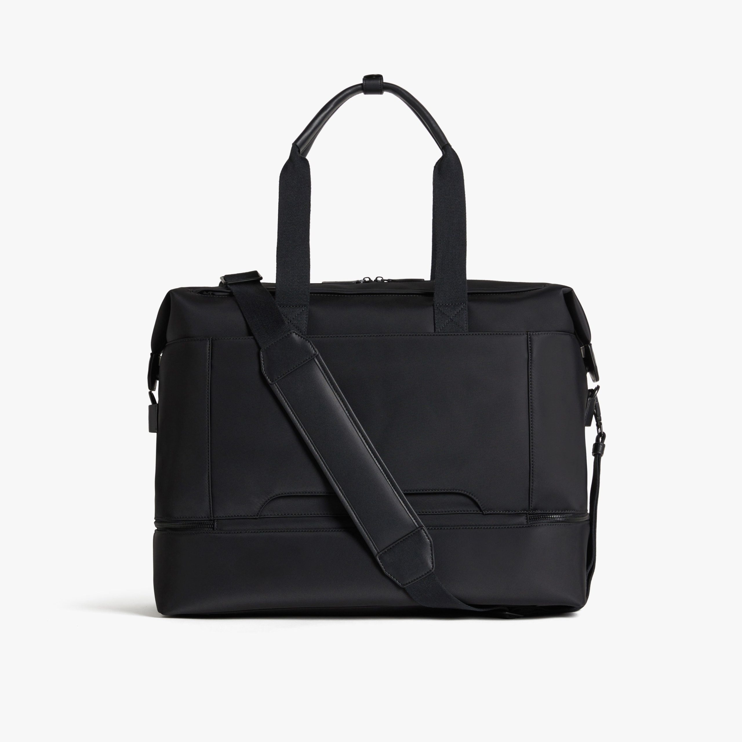 Equipped with an adjustable. removable shoulder strap and a trolley sleeve to secure your weekender to a suitcase handle while travelling